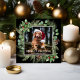 This Merry Christmas Pet Photo Wreath Square Christmas Greeting Card features a dog or cat photo of your choice surrounded by a wreath with holly and berries, pine branches, pinecones, and eucalyptus, with your names and date. Add your personal greeting to the back of the card, or delete that text if not using.