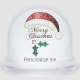 Merry Christmas Santa hat Red Gold Green Sparkles Snow Globe. Elegant X-mas Christmas Winter Holiday Accents. PLdesign's Red sparkles Santa hat covering gold Merry Christmas text and red and green holly twig pattern. Photo of sparkles, not actual glitter.