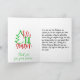 Grande (8.5" x 11") ¡Ve grande o vete a casa! Atrévete a felicitar a lo grande con estas tarjetas gigantes. Hechos para esas grandes ocasiones, sus diseños personalizados se pueden añadir a todos los lados de esta tarjeta plegada sin coste adicional. Dimensiones: 8,5" x 11" (retrato) o 11" x 8,5" (paisaje) Proceso de impresión CMYK a todo color Impresión a todas partes sin costo adicional El área imprimible en la parte posterior de la tarjeta es de 5" x 7" (retrato) o 7" x 5" (paisaje) Los sobres blancos estándar incluyen el tipo de papel: mate La opción de papel más popular, el concha de Matte El color es suave al tacto con un acabado suave que proporciona el telón de fondo perfecto para los diseños elegidos. El acabado mate blanco claro y sin revestir con una textura de concha de huevo El papel es fácil de escribir y no se va a hacer de mancha de mancha de los Estados Unidos
