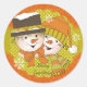 Merry Everything Snowman ronda los pegatinas, tan coloridos y lindos, presenta a una pareja de hombres de nieve con un sombrero de top negro, mostaza y gorra naranja de invierno, y bufandas de mostaza y rayas naranjas en un fondo de puntos de polka y copos de nieve con texto que lee Merry Everything . Busque la tarjeta de felicitación correspondiente, las etiquetas de dirección, los sellos postales y los sobres.