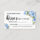 Flores Azules: La Tarjeta De Juego De Ducha De Novias Con Cuántos Besos. Haga clic en "Editar diseño" para personalizar o modificar la disposición (cambiar la redacción, el color del tipo de letra, el estilo del tipo de letra ). **Rótulo de correspondencia disponible** CÓMO REPRODUCIR: Los invitados rellenarán la tarjeta con su conjetura del número de besos en un frasco.