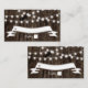 Cadena de luces y banner vintage en la antigua tarjeta de asiento boda de verano de madera con una pancarta blanca con contorno marrón sobre el fondo antiguo de madera marrón. Este moderno y moderno diseño de boda de madera con elementos antiguos forma parte de un conjunto o colección de bodas, es totalmente personalizable y es perfecto para un boda rústico occidental de granero de verano. Ten en cuenta que no hay madera real, sólo imágenes impresas.