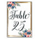Mesa Caligrafía floral acuarela Tarjeta de tabla número