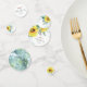 Mesa de confeti para una ducha de bebé con adorables girasoles acuáticos.