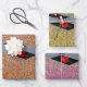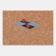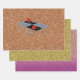 En el papel de diferentes colores se ve una mesa de ping-pong con murciélagos y pelota