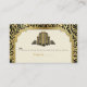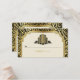 Edificios abstractos de estilo Art Déco con una tarjeta de asiento en negro, boda dorado, con edificios abstractos y un borde de estilo Art Déco y damasco negro y dorado. Tu texto está en un marco beige/crudo. Este elegante diseño es un enfoque moderno a un estilo vintage/retro que se asemeja al de los años 20 y el Gran Gatsby. Forma parte de un conjunto de bodas y es completamente personalizable. Algunos elementos son cortesía de All-Free-Download.com