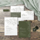 Elegante ilustracion de flores dibujado a mano delicado y detalles modernos de escritura tipográfica, en color verde y blanco de sabio oscuro, simple y romántico. Excelentes postales florales para boda rústico moderno, bodas en el jardín y boda boho en verano e invierno. Personalizable completo con cualquier color que coincida con el tema boda. Vea todas las piezas coincidentes de la colección.