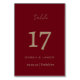 Elegante Tarjeta de número de tabla personalizada de escritura de Borgoña