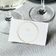 Una tarjeta de lugar de número de tabla refinada que presenta anillos de efecto oro entrelazados que rodean un guión elegante sobre un fondo blanco crujiente. El diseño minimalista y moderno añade un toque de moda a las recepciones y fiestas, con un amplio espacio para escribir números de mesa a mano para asientos claros y un aspecto cohesivo y de gama alta. Por favor, tenga en cuenta que el color dorado está impreso.