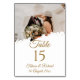 Aumente la sofisticación de su evento con nuestra Tarjeta Elegante de Mesa de Texto de Oro. Este diseño cuenta con un espacio para una foto de la pareja feliz, un elegante guión dorado y un lugar en la parte trasera para añadir nombres a los invitados. Perfecto para añadir un toque de lujo a su boda, aniversario o cualquier ocasión especial.