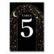 Tarjeta de número de tabla mística celestial en boda negro y oro