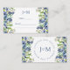 Elegante azul floral floral otoño otoño novia novio monograma boda tarjetas planas.