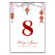 Un diseño artístico con flores de cerezo rosadas y farolillos rojos para una auspiciosa ocasión boda china. Personaliza con tu propio número de tabla, nombre y fecha de novia y novio.