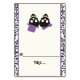 Cráteres divertidos con la tarjeta plegada de escolta de boda morado y negro de Halloween, con una pareja de cráneos negros novia y novio sobre fondo de marfil y un borde con patrón de cráneo. El novio lleva un gorra y la novia un arco. Este moderno y contemporáneo diseño de bodas de estilo gótico es perfecto para un boda de Halloween. Doble la tarjeta a lo largo del centro para tomar una tarjeta de escolta estilo tienda.