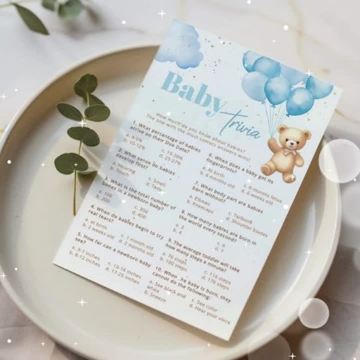 Balones azules con peluche con tarjeta para la ducha para bebés Hay artículos de aseo disponibles.
