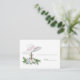 Una tarjeta de bonito con un gran gorra con barbilla rosada sobre un pedestal con hermosas flores en la base. La invitación a la ducha de novia coordinada está disponible.