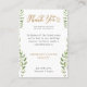 Esta tarjeta de Boda con color verde dorado es ideal para una celebración inspirada en el boho. El diseño combina la elegancia rústica con un ambiente moderno de bosque, con ricas hojas de color verde pálido y eucalipto. Estas hermosas tarjetas de agradecimiento son una manera maravillosa de hacer saber a sus invitados que han hecho una donación a su organización benéfica favorita en honor a ellos.