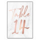 Añade un toque elegante a la recepción de tu boda con tarjetas de mesa personalizado. Las tarjetas de mesa bodas cuentan con un fondo de mármol blanco y un estilo de letra de guión de moda en oro subió. Se pueden encontrar números adicionales en la colección siguiente.