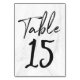 Añade un toque elegante a la recepción de tu boda con tarjetas de mesa personalizado. Las tarjetas de mesa bodas cuentan con un fondo de mármol blanco y un tipo de letra de guión moderno. Se pueden encontrar números adicionales en la colección siguiente.
