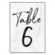 Añade un toque elegante a la recepción de tu boda con tarjetas de mesa personalizado. Las tarjetas de mesa bodas cuentan con un fondo de mármol blanco y un tipo de letra de guión moderno. Se pueden encontrar números adicionales en la colección siguiente.