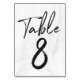 Añade un toque elegante a la recepción de tu boda con tarjetas de mesa personalizado. Las tarjetas de mesa bodas cuentan con un fondo de mármol blanco y un tipo de letra de guión moderno. Se pueden encontrar números adicionales en la colección siguiente.