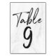 Añade un toque elegante a la recepción de tu boda con tarjetas de mesa personalizado. Las tarjetas de mesa bodas cuentan con un fondo de mármol blanco y un tipo de letra de guión moderno. Se pueden encontrar números adicionales en la colección siguiente.