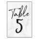 Añade un toque elegante a la recepción de tu boda con tarjetas de mesa personalizado. Las tarjetas de mesa bodas cuentan con un fondo de mármol blanco y un tipo de letra de guión moderno. Se pueden encontrar números adicionales en la colección siguiente.
