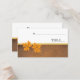 Hojas de arce naranja sobre papel granulado de color marrón boda rústico acompañamiento tarjeta de lugar con una franja dorada sobre fondo marrón y blanco y hojas de arce naranja en las esquinas. Este elegante y moderno diseño casero de otoño con un toque vintage forma parte de un conjunto o colección de bodas y es un modelo de personalizable perfecto para un boda de otoño.
