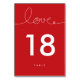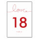 Mesa Loopy Love Red Heart Boda Tabla Número de tarjeta
