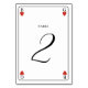 Un único diseño de boda de estilo de cartas en monograma. Un diseño impresionante que utiliza elementos de las cartas de juego para crear un diseño de fondo boda único. Un elegante monograma de pareja de bodas de corazón rojo. Un diseño de número de tabla de boda de cartas de juego tipo con elementos modernos. También hay disponibles invitaciones de boda coincidentes y otros artículos de papelería. Personalizar el número y compra cada número de tabla individualmente según cuántos números de tabla necesite.
