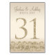 Este moderno diseño de tarjetas de mesa presenta falsos acentos purpurinas de oro con fondo de champán. Perfecto para bodas elegantes y modernos. Las tarjetas de número de tabla llegan a 50.