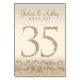 Este moderno diseño de tarjetas de mesa presenta falsos acentos purpurinas de oro con fondo de champán. Perfecto para bodas elegantes y modernos. Las tarjetas de número de tabla llegan a 50.
