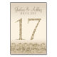 Este moderno diseño de tarjetas de mesa presenta falsos acentos purpurinas de oro con fondo de champán. Perfecto para bodas elegantes y modernos. Las tarjetas de número de tabla llegan a 30.