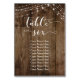 Este rústico y elegante conjunto de diseños para bodas y eventos presenta algunas de las tendencias más populares del diseño boda combinado de una manera fresca. Con un rico fondo de madera marrón y dos cuerdas de acentos brillantes de luz, he combinado una hermosa fuente moderna de escritura para representar gráficos que representan palabras clave y frases en el conjunto de diseño. En esta tarjeta de cuadro, el texto de la caligrafía dice "cuadro 6". Un campo de plantilla permite mostrar el nombre del invitado de tabla. Esta colección es ideal para un evento de celebración o recepción post-boda informal. Todas las capas se desbloquean para permitirle el mayor control que desee. // 19 //