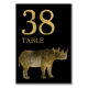 Aspecto del número de la tabla de rinocerontes para animales africanos de la jungla 38 Purpurina. Una tarjeta de número de mesa perfecta para un boda africano o boda de temas de la jungla. Busque más en esta serie en la colección Jungle African Animals Boda.