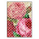 Hermosa rosa rosa vintage floral con acompañamiento plegado florido... paja........................................................................................................................................................................................................................................ Tu texto está en una banda blanca con contornos dorados. Si lo doblas a lo largo del centro, obtendrás una tarjeta de acompañamiento estilo tienda. Un patrón de puntos polka sobre los rosas adorna la parte de atrás. Algunos elementos vienen de ArtsyBee, pixabay