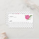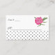 Preciosa tarjeta de acompañante / lugar de recepción de boda hecha en blanco, con bonitas ilustraciones a la acuarela de una peonía rosa, en la esquina superior derecha y puntos negros en la parte inferior. Todo el texto está listo para personalizar, para adaptarse a las necesidades de su boda. Están disponibles productos de boda a juego.