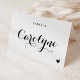 Eleva tu recepción de boda con nuestras hermosas y personalizables tarjetas de lugar de boda, diseñadas para agregar un toque personal a tu día especial. Presentan caligrafía negra moderna y un acento de corazón. Agrega los nombres de tus invitados, la opción de comida, la fecha de la boda o un mensaje especial. Transforma tus mesas de recepción en una impresionante exhibición de personalización y amor con nuestras modernas tarjetas de lugar. Perfectas para bodas, baby showers, despedidas de soltera, cumpleaños y mucho más.