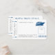 Una tarjeta de acompañante para pasaje de crucero azul con espacio para mensajes personalizados e información de transporte, perfecta para cruceros de boda o celebraciones de cumpleaños y bar mitzvah.