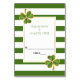 El trébol o el shamrock irlandeses y un patrón a rayas hechas de rayas verdes y blancas son el centro de esta moderna tarjeta de acompañamiento de los bodas del Día de San Patricio. Doblarlo a la mitad manualmente para tomar una tarjeta de escolta estilo tienda.