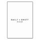Estas tarjetas de acompañamiento de bodas de caligrafía de la zona sur son perfectas para un boda moderno. El diseño minimalista presenta una tipografía rústica y elegante en blanco y negro, con florituras extravagantes que le confieren un aspecto sencillo. Personalice la parte posterior de las tarjetas del lugar con los nombres de la novia y del novio y la fecha. Personalice con el nombre de invitado y el número de tabla y compre cada tarjeta individualmente. Como alternativa, deje las secciones de plantilla en blanco (ELIMINAR "Nombre de invitado aquí" y "13"), compre a granel y escriba a mano la información en la tarjeta impresa cuando llegue. Por favor, tenga en cuenta que estas tarjetas llegan sin formato. Tendrás que anotar y doblarlos.