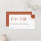 Gráfica del guión de la Moda Boho "Diaper Raffle", tarjeta del recinto de la ducha de bebé. Características de las tarjetas, ilustracion de sol de arte lineal en color naranja rústico con respaldo de patrón naranja a juego.