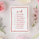 Mesa Tarjeta de gráfico de asientos de boda numérica de