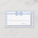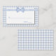 Dulce moda de país boda escolta tarjetas de lugar, hecho en un patrón de gingham color azul claro y blanco a cuadros, con un área de texto blanco. Gráficos de una cinta de gingham azul claro y blanca y una extensión de arco por la parte superior. Productos bodas a juego disponibles.