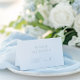 Mesa Tarjeta de lugar de boda con caligrafía en azul po