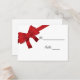 Personalice estas tarjetas de lugar de boda de invierno de lazos rojos con los nombres de sus invitados y la mesa en la que se sentarán en su recepción de bodas de diciembre. Estas elegantes tarjetas de escolta de boda invernal personalizadas presentan un diseño de lazo rojo festivo que se asemeja a un regalo de Navidad envuelto con un fondo blanco.
