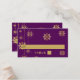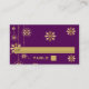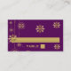 Dorado copos de nieve berenjena morado de invierno tarjeta de sitio para bodas que cuenta con copos de nieve colgados de oro sobre fondo morado de berenjena. Un diseño moderno y contemporáneo para su boda Navidad en diciembre. Este diseño de plantilla retro forma parte de un conjunto de bodas, es totalmente personalizable y puede ser personalizado.