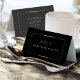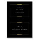 Elegante marco moderno de oro falso con contenido de fuente de escritura y serif con estilo sobre fondo negro, simple y sofisticado. Tarjetas de lugar ideales para bodas clásicas modernas, bodas de lujo vintage y bodas formales sencillas.