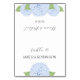 Las hortensias azules son mis flores favoritas. Este es mi arte original de acuarela. Todo el conjunto de la boda está coordinado. NOTA: Estas tarjetas llegan planas. Las doblas por la mitad para convertirlas en tarjetas de pie. Personaliza cada tarjeta para los invitados individuales y agrega cada tarjeta a tu carrito por separado.