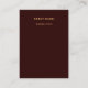 Tarjeta de lugar de boda elegante en burgundy profundo. características nombre del invitado en negrita y el número de mesa escrito en palabras debajo. aspecto limpio perfecto para bodas y eventos formales.